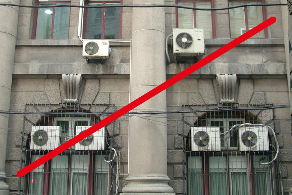 Qui soventemente si manifesta la problematica del corretto posizionamento dell’unità esterna, dovuta alla mancanza di uno spazio esterno adeguato, come anche a vincoli comunali legati alla Soprintendenza delle Belle Arti.