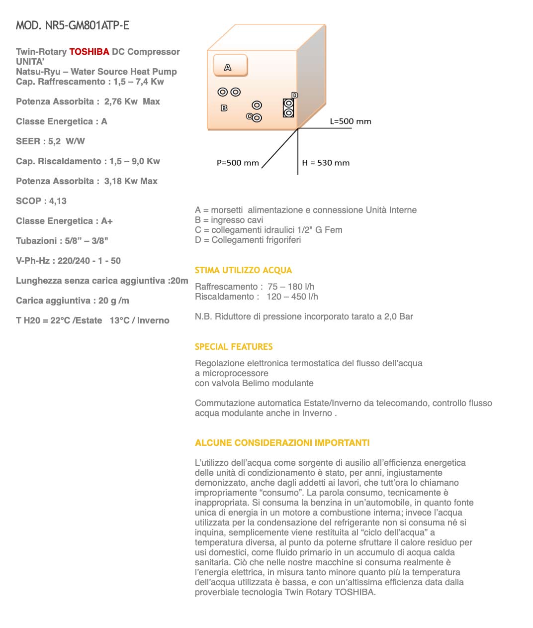 Il risultato dell’utilizzo di un compressore Twin-rotary modulante e di tanta profusione di elettronica sia Toshiba sia nostra, si riflette in modo massivo sulla qualità ma non sui costi.
